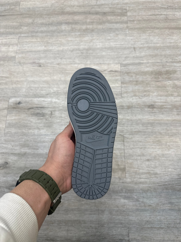 1. طرح دوطرفه (Reversed Swoosh): یکی از ویژگیهای برجسته جردن 1 ترویس، لوگوی نایک (Swoosh) است که به طور معکوس در قسمت بیرونی کفش قرار گرفته. این تغییر طراحی به مدل یک حس خاص و متفاوت میده.